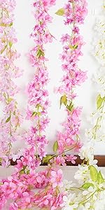 HO2NLE 6Pcs Artificial Cherry Blossom Garland 5.9FT Fake Cherry Blossom Vines