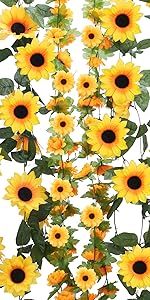 HO2NLE Silk Flower Garland Artificial Sunflower Garland Fake Hanging Vines