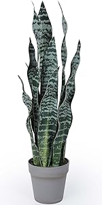 Yinleus Artificial Snake Plant 25Inch Fake Sansevieria Faux Silk Potted Plant...