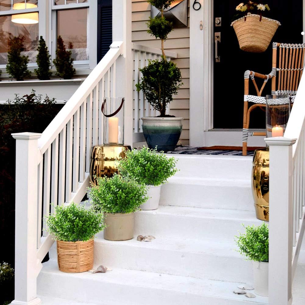 GREENRAIN Artificial Flowers Outdoor Fake Flowers for Decoration UV Resistant No Fade Faux Plastic Plants Garden Porch Window Box Décor (8 Bundles, 1#Green)
