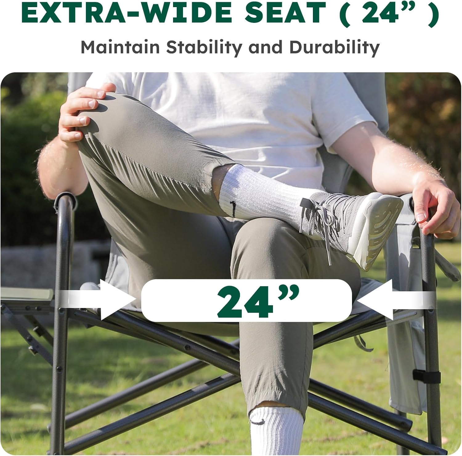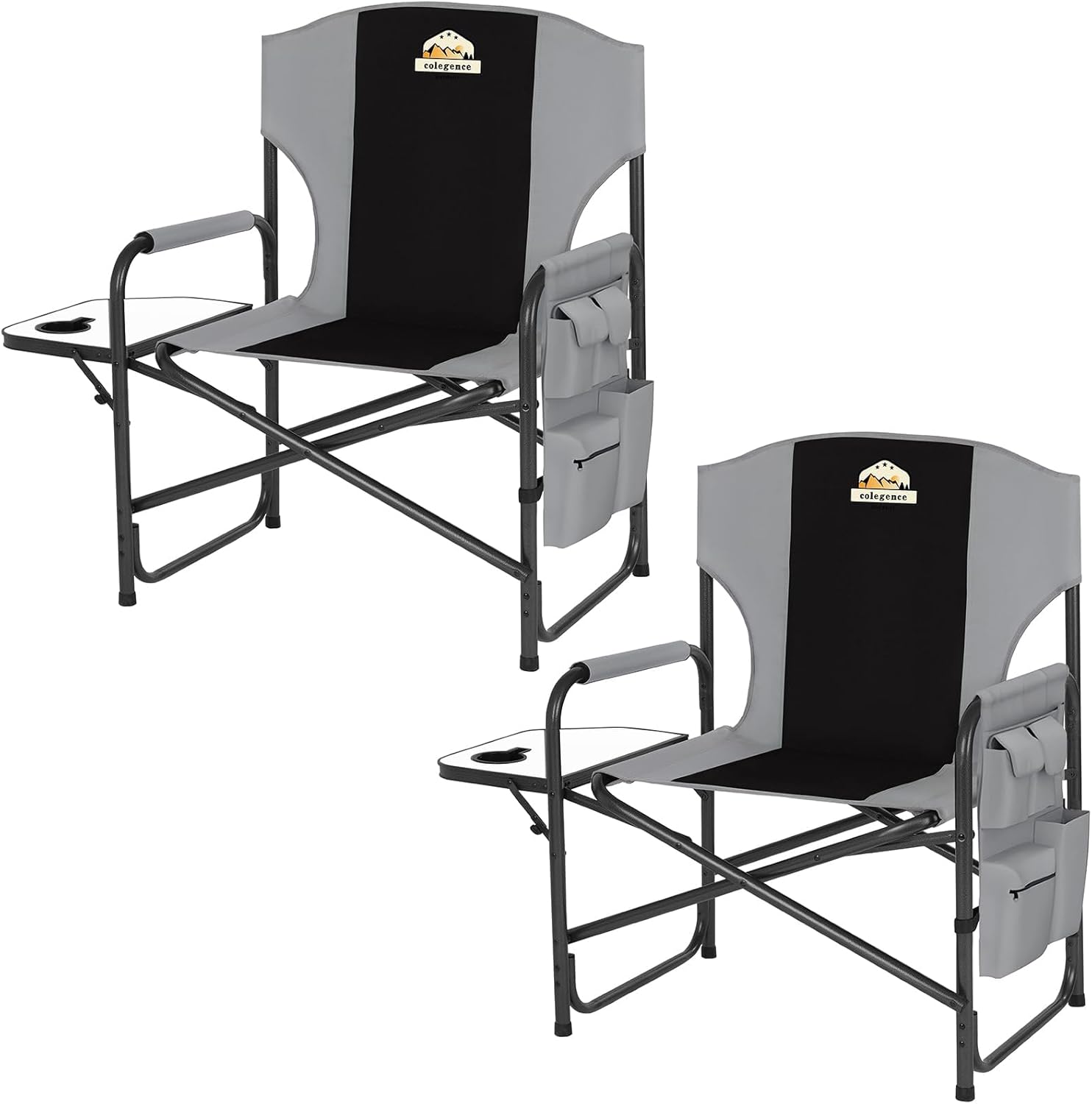 Oversized Directors Camping Chair Set of 2 Support 600 LBS, Heavy Duty Folding Outdoor Chairs with Detachable Side Pocket and Adjustable Side Table for Outside Beach,Lawn,Fishing (Black)
