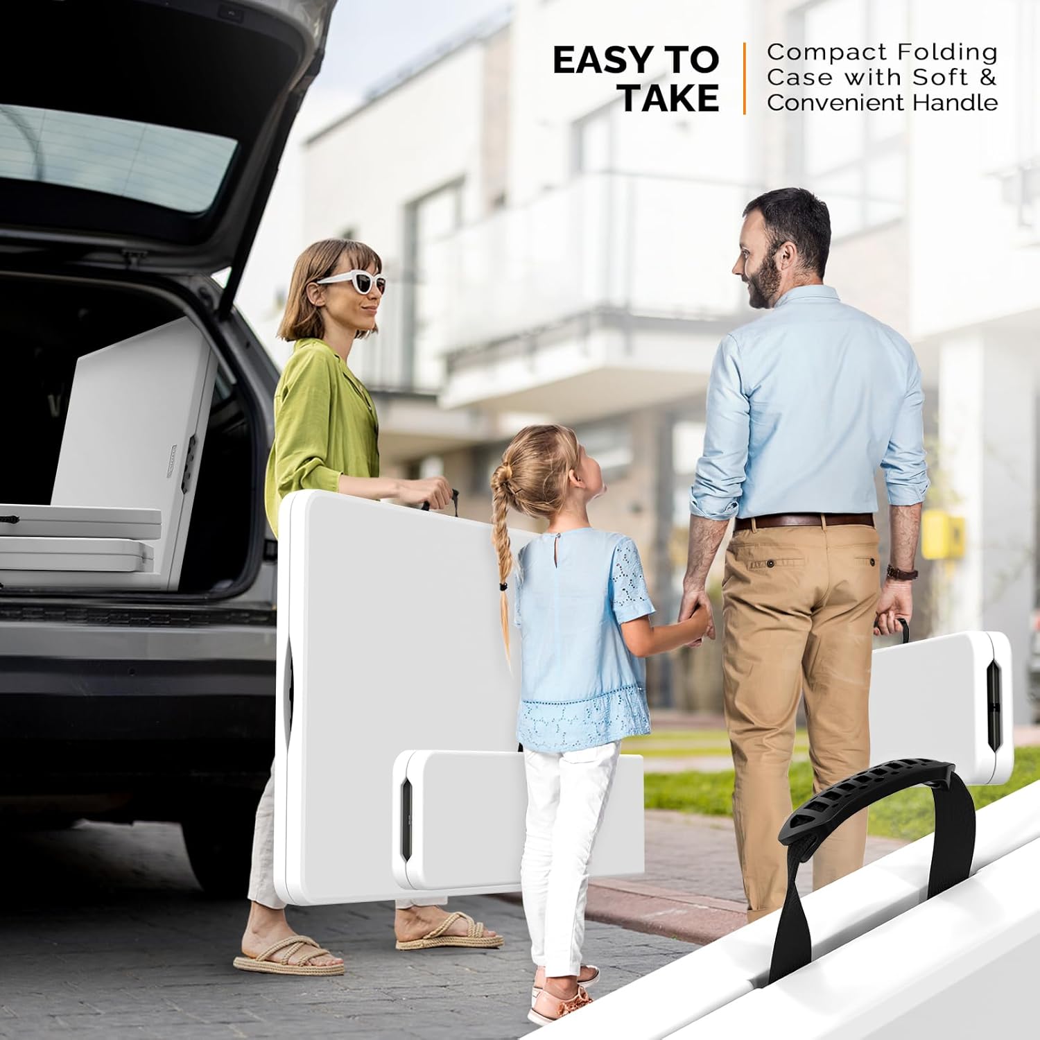 VINGLI Picnic Table Set with 2 Benches, 6 Feet Camping Table Chair Set,3-Piece Folding Furniture for Indoor or Outdoor Use, Smooth Tabletop, White