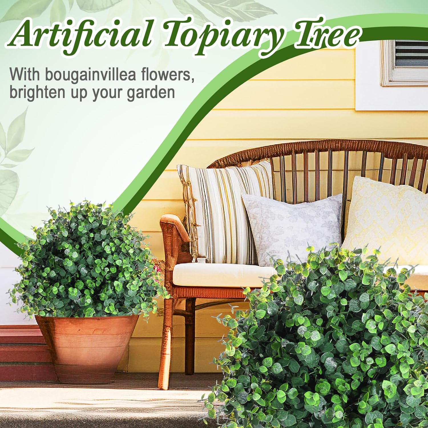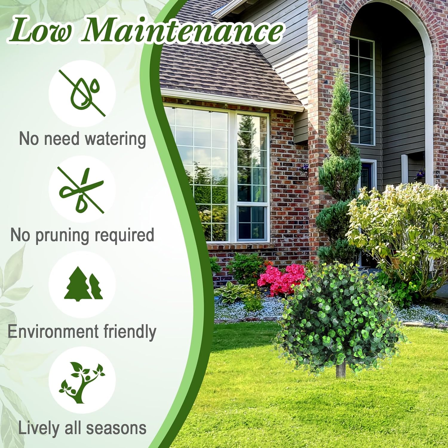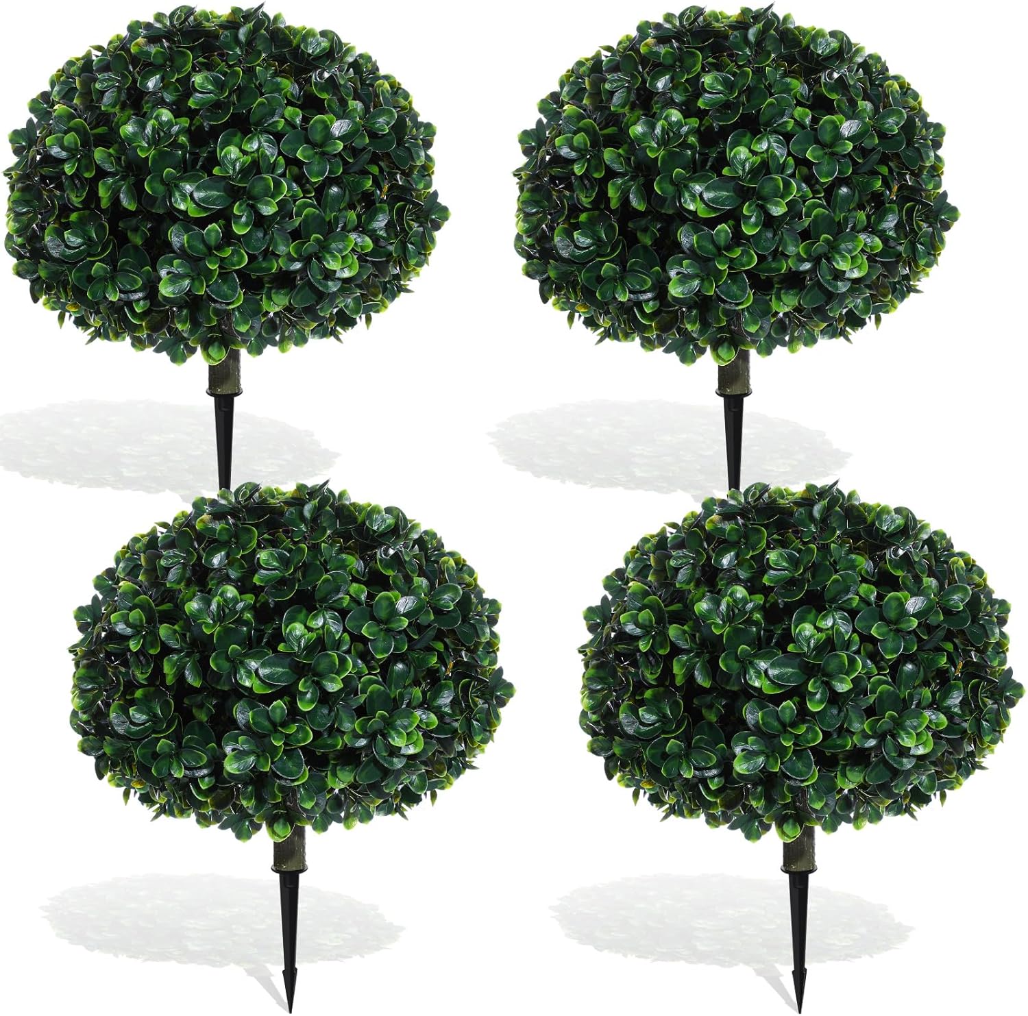 XunYee 6 Pcs 20" Artificial Topiary Ball Trees, Outdoor Artificial Shrubs Faux Bushes UV Resistance Greenery Fake Plants Tree with Ground Spike for Garden Porch Patio Indoor Decoration (Light Green)